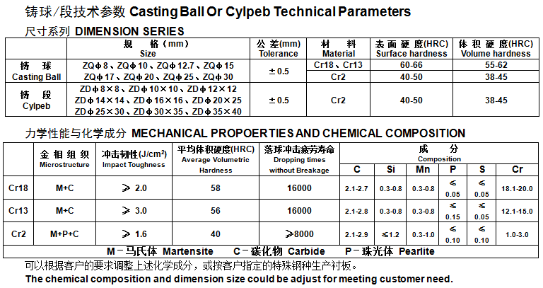 鑄球/段技術(shù)參數(shù)
